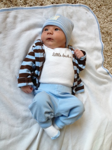 I stayed at the hospital one more kind of rough night, and then the following morning we got ready to check out. The second night, Micah was having a lot of trouble eating because he had been sucking the pacifier that evening and was getting nipple confusion. He had forgotten how to suck and didn't want to eat and secondly, I couldn't get him to wake up to eat. He wanted to sleep a lot, but I felt pressure because they said he had to eat right before 6:30am when they would take him for his circumcision, which wouldn't take place until 8:30 and then they would monitor him until 10am. I was panicked worrying that I wouldn't be able to wake him to eat and he would be traumatized during his circumcision because he was too hungry. Anyway, I hadn't been able to wake him most of the night to eat, but I was finally able to wake him to eat around 5:45, so he got a meal before he left. Whew! After he left for the circumcision, I was able to sleep for a little bit, but not very soundly because I was worried about him. Finally, at 10am, they brought him back, and I missed him SO much!!