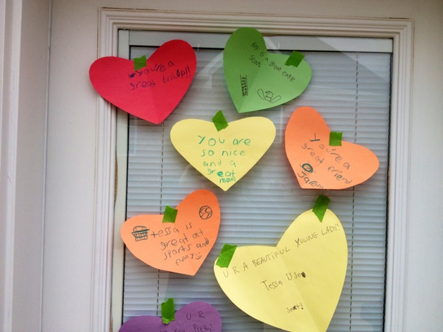 I was so grateful that my mom was here to do something special with the kids on Valentine's Day since I had just gotten home from the hospital the day before and was so tired from lack of sleep and sore from the delivery.  It made me happy that they got to do something fun, and the cookies were DELICIOUS!  I know that I ate more than my share!! :)